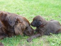 Junge Flat coated Retriever neigen gelegentlich mal zu leichten Augenentzündungen. Daher sollte das sich in den Augenwinkeln bildende Augensekret regelmäßig entfernt werden.